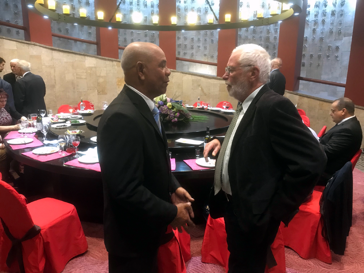Jetzt begann der gemütliche Teil. Wir, als deutsche Absolventen nutzten untereinander erst einmal die Zeit, um uns wiederzukennen und zu erzählen, welchen Weg wir seit Absolvierung der Schule gegangen sind. Denn manche sahen sich tatsächlich das erste Mal seitdem Abschluss des Studiums. Auch die anwesenden Ehefrauen hatten genug zu erzählen. Dann erweiterte sich der Kreis mit denen am Tisch sitzenden ehemaligen ausländischen Kursarten. An Pedro erinnere ich mich sehr genau. Ich hatte auch eine große Bitte an ihn. Auch ich hatte einen kubanischen Freund, habe aber den Kontakt zu ihm in den vielen Jahren verloren und bat ihn nun mir bei der Suche behilflich zu sein. Seitdem stehen wir im Kontakt. Vielleicht habe ich Glück und Hector lebt noch und ich kann ihn irgendwann mal auf Kuba wiedersehen. Ich gab ihn ein Foto von damals, die ursprüngliche Wohnadresse in Matanzas und wir erzählten viel über jene Tage in Aserbaidschan. Mit dem libyschen Kursanten, der jetzt Kapitän zur See in der Marine von Libyen ist, unterhielten wir uns selbstverständlich zu den aktuellen Ereignissen in diesem nordafrikanischen Staat.